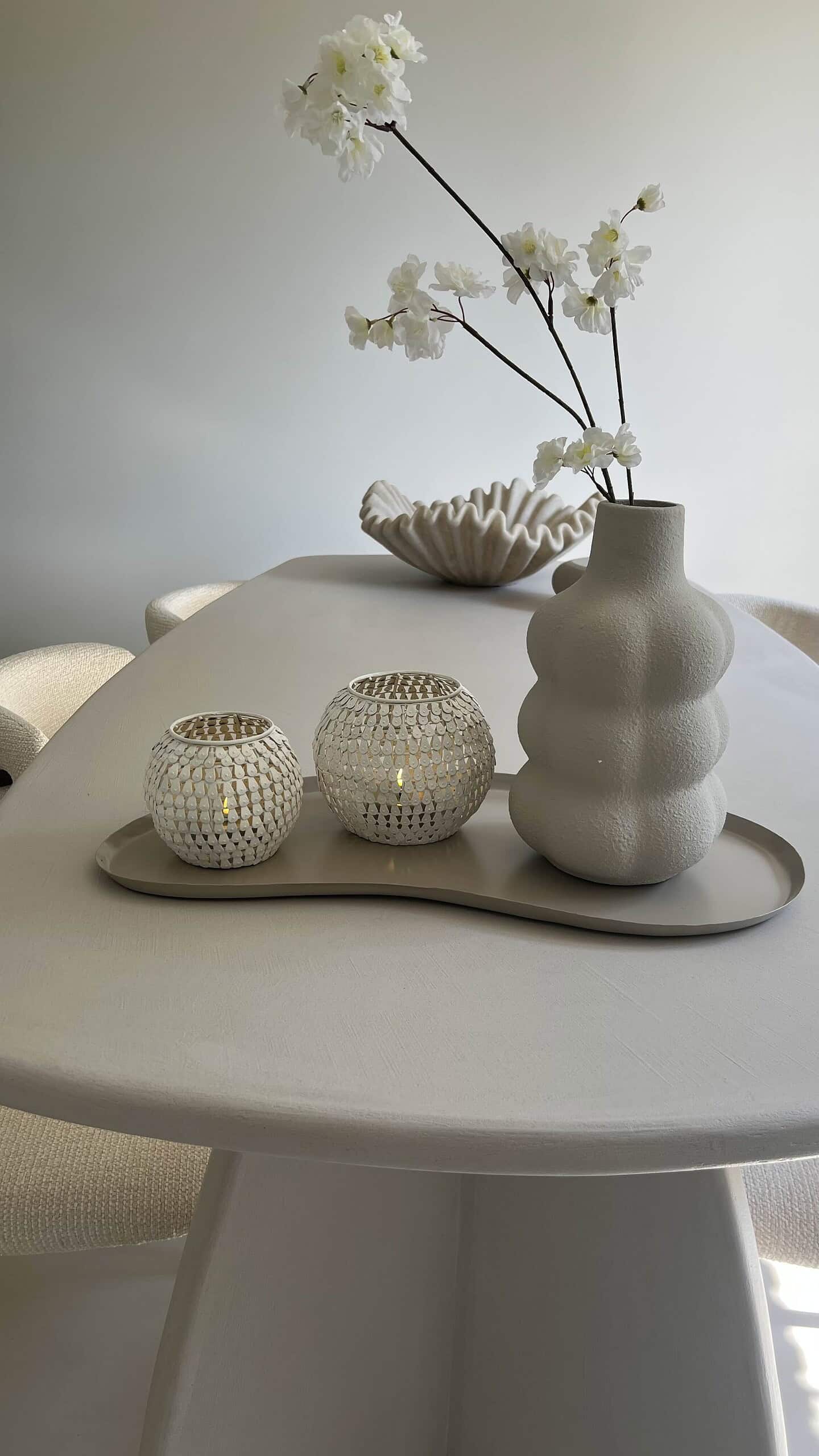 Möchten Sie Ihren Tisch oder Ihr Sideboard in einem Zug stilvoll gestalten? Mit dem Komplettset Quincy müssen Sie nicht mehr über die richtigen Kombinationen nachdenken, wir haben es bereits für Sie gestylt! Dieses Set besteht aus sanften neutralen Tönen und natürlichen Materialien, die perfekt in jedes Interieur passen. Ganz gleich, ob Sie ein modernes, minimalistisches oder Japandi-Haus haben: Dieses Paket bringt sofortige Gemütlichkeit in Ihr Zuhause.